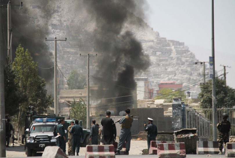 KABUL, AFGHANISTAN – 21: Armed militant insurgents launched attacks on Presidential Palace and other government offices as the Afghan President Ashraf Ghani was performing Eid -ul- Adha pray in Kabul, Afghanistan, on August 21, 2018. Haroon Sabawoon/ Afghan Multimedia Agency (AMA)