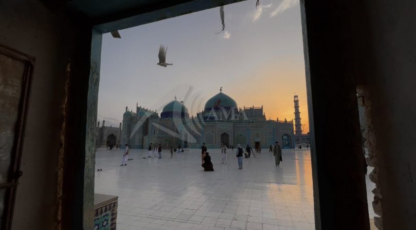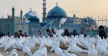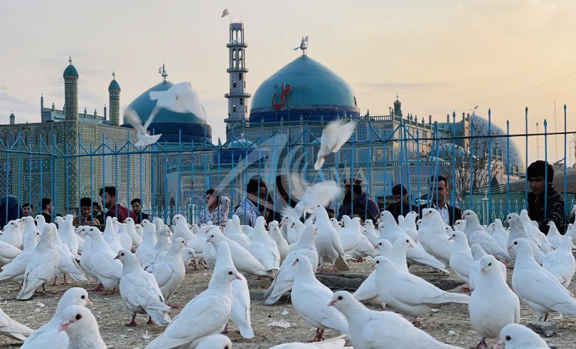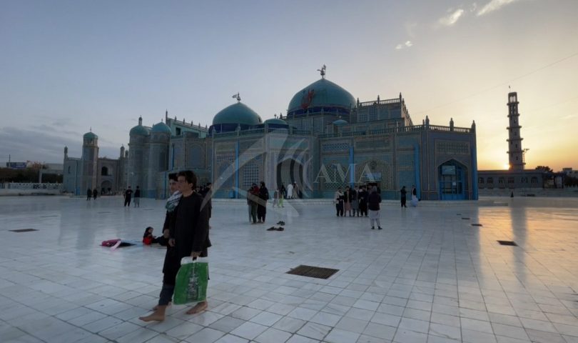 Afghanistan: Afghan people visit the Hazrat-e-Ali shrine in the Mazar-e-Sharif city located on the northern edges of Afghanistan, on May 28, 2022. Mazar-e-Sharif is the city of Balkh province, one of the fourth largest cities in Afghanistan which become a tourist attraction because of its Islamic history and a famous shrine (Hazrat-e-Ali Shrine). Hazrat Ali ibn Abi Talib was a cousin, son-in-law, and companion of the Islamic prophet Muhammad “peace be upon him”. He ruled as the fourth rightly guided caliph from 656 until his assassination in 661. Parwiz Sabawoon/ Afghan Multimedia Agency