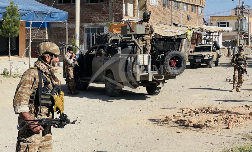 KABUL, AFGHANISTAN-MAY 14: Afghan security forces inspect the scene of a blast targets Friday prayer in Shakar Dara north district of Kabul, Afghanistan, on May 14, 2021. At least 12 people including Imam Mufti Numan were killed and injured dozens more in Kabul mosque. Afghanistan marks the second day of Eid al-Fitr. The Taliban has condemned the attack in a twitter post, and call it a terrorism act. Afghan Officials confirmed the attack. HAROON SABAWOON/AFGHAN MULTIMEDIA AGENCY/AMA