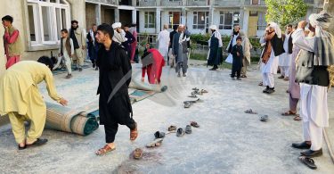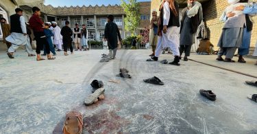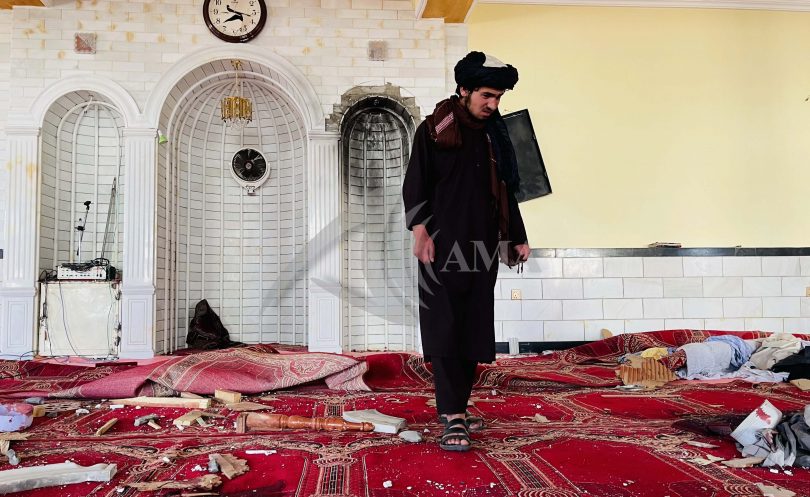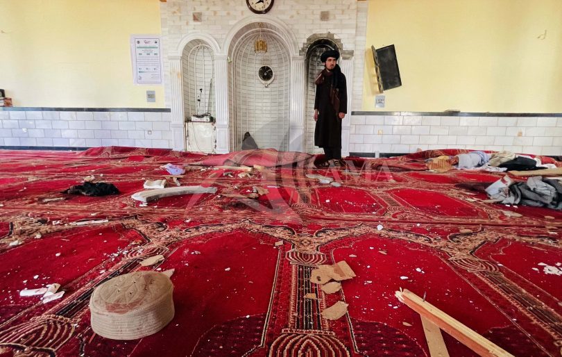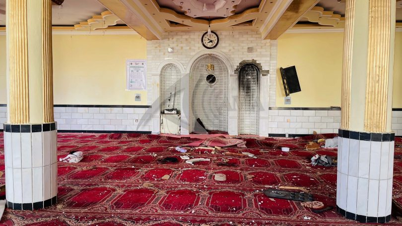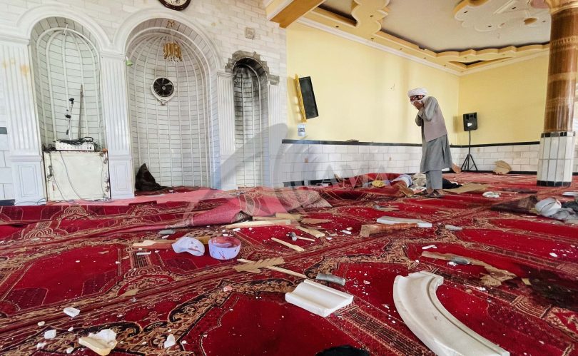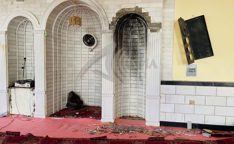 KABUL, AFGHANISTAN-MAY 14: Debris covers the ground after a blast targets Friday prayer in Shakar Dara north district of Kabul, Afghanistan, on May 14, 2021. At least 12 people including Imam Mufti Numan were killed and injured dozens more in Kabul mosque. Afghanistan marks the second day of Eid al-Fitr. The Taliban has condemned the attack in a twitter post, and call it a terrorism act. Afghan Officials confirmed the attack. HAROON SABAWOON/AFGHAN MULTIMEDIA AGENCY/AMA