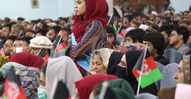 KABUL, AFGHANISTAN – MARCH 29: Afghan women, youths, activists, and elders gathered to defeat...