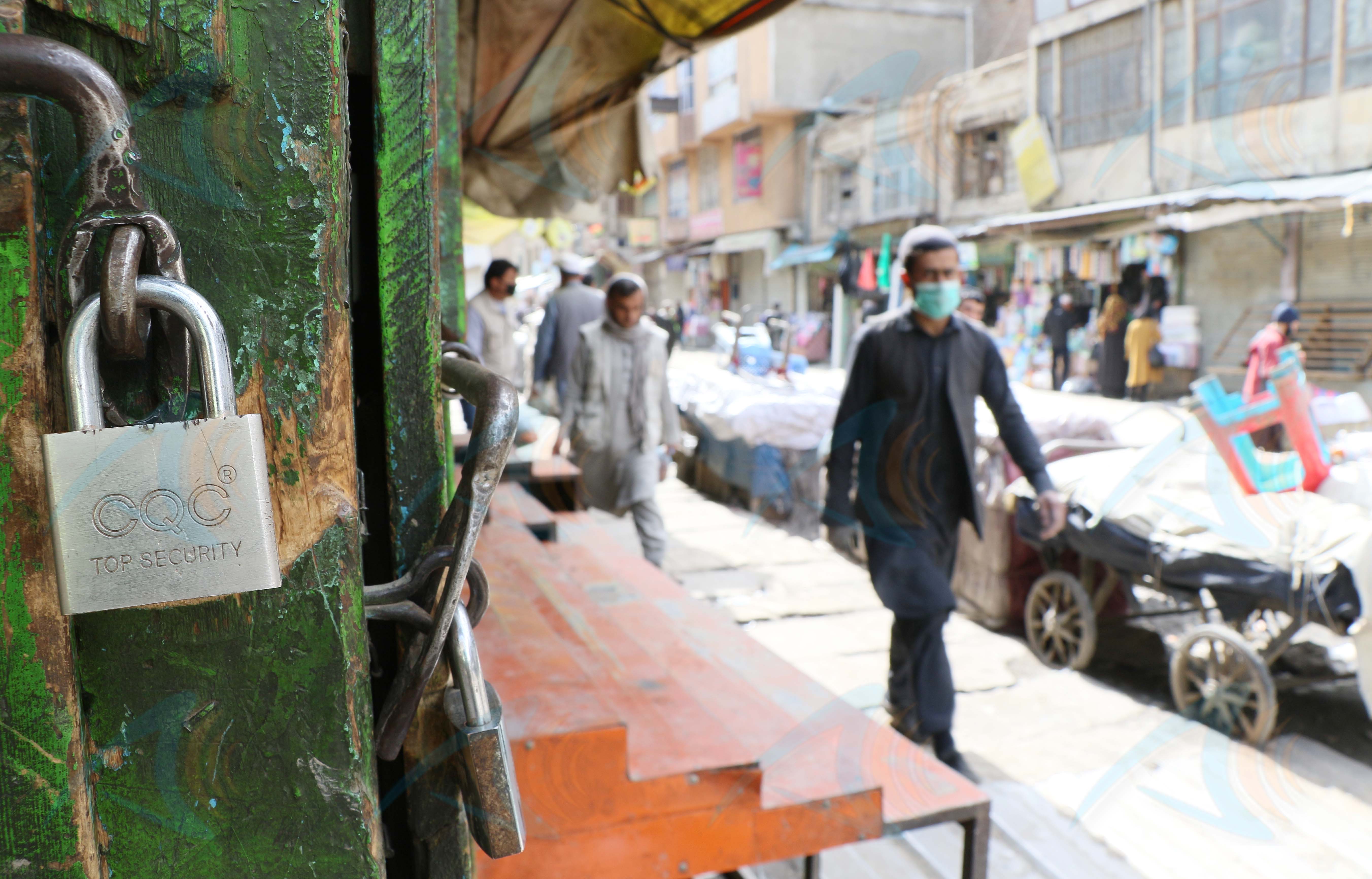 KABUL, AFGHANISTAN-MARCH28: Afghans walk past deserted markets, in Kabul, Afghanistan, 28 March 2020. Kabul, a city with an estimated population of six million, locked-down due to the coronavirus outbreak in Afghanistan. The lockdown begins Saturday and will continue for at least three weeks, government officials said. Shamriz Sabawoon/ AMA