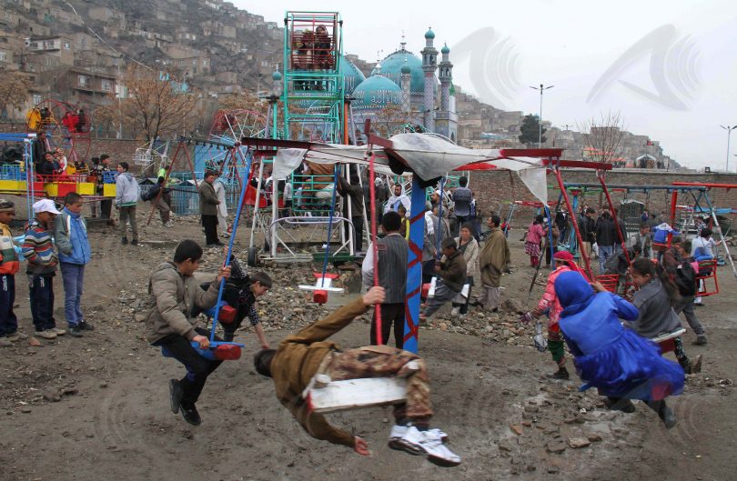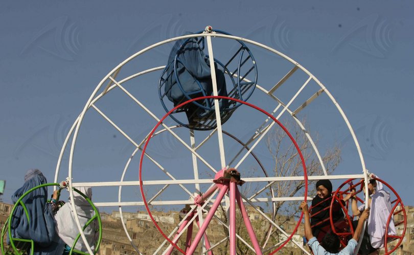 Kabul, Afghanistan – March 21: Afghan children ride on a carousel as they celebrate Eid al-Fitr in Kabul, Afghanistan, on March 21, 2013. This year Eid al-Fitr has gone silently due to pandemic Corona-Virus. Eid al-Fitr is one of the two major holidays in Islam, which is celebrating to mark the end of the Holy month of Ramadan. Archive/ Afghan Multimedia Agency “AMA”