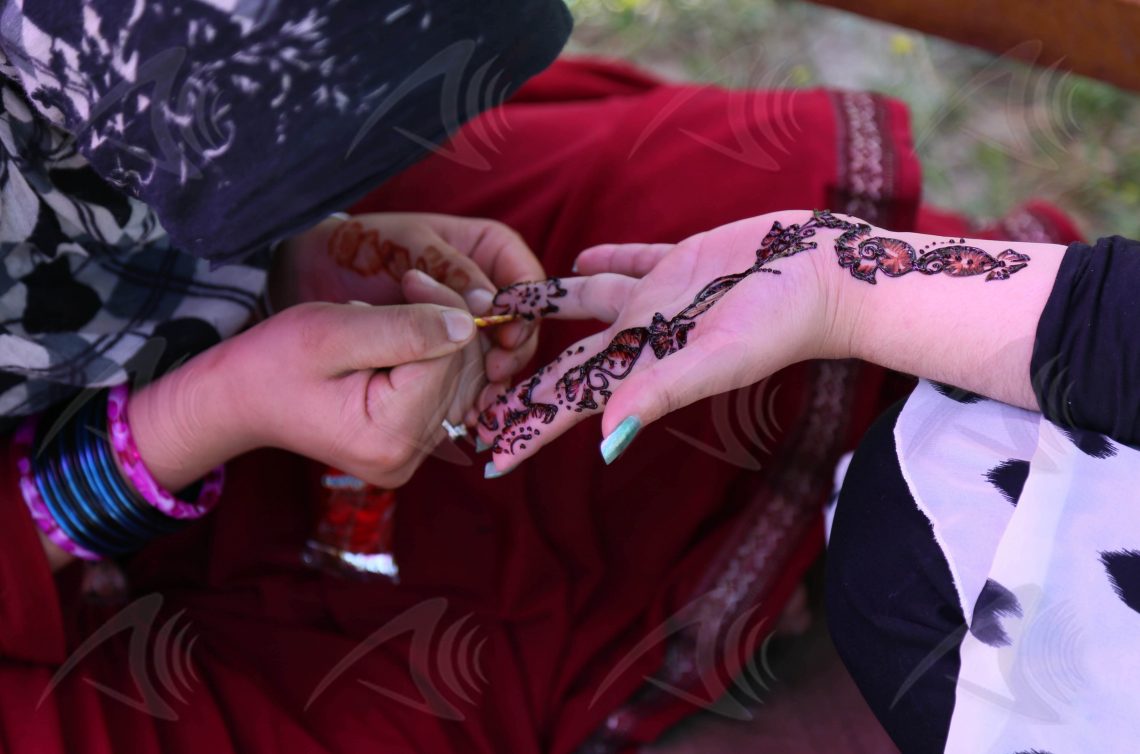 Kabul, Afghanistan – March 21: An Afghan woman apply henna designs on her hand as she celebrate Eid al-Fitr in Kabul, Afghanistan, on March 21, 2013. This year Eid al-Fitr has gone silently due to pandemic Corona-Virus. Eid al-Fitr is one of the two major holidays in Islam, which is celebrating to mark the end of the Holy month of Ramadan. Archive/ Afghan Multimedia Agency “AMA”