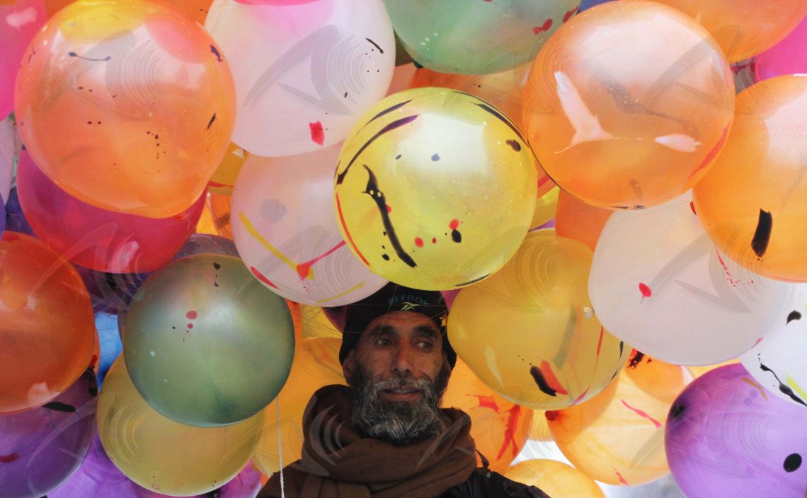 Kabul, Afghanistan – March 21: An Afghan laborer sells balloons during the first day of Eid al-Fitr in Kabul, Afghanistan, on March 21, 2013. This year Eid al-Fitr has gone silently due to pandemic Corona-Virus. Eid al-Fitr is one of the two major holidays in Islam, which is celebrating to mark the end of the Holy month of Ramadan. Archive/ Afghan Multimedia Agency “AMA”
