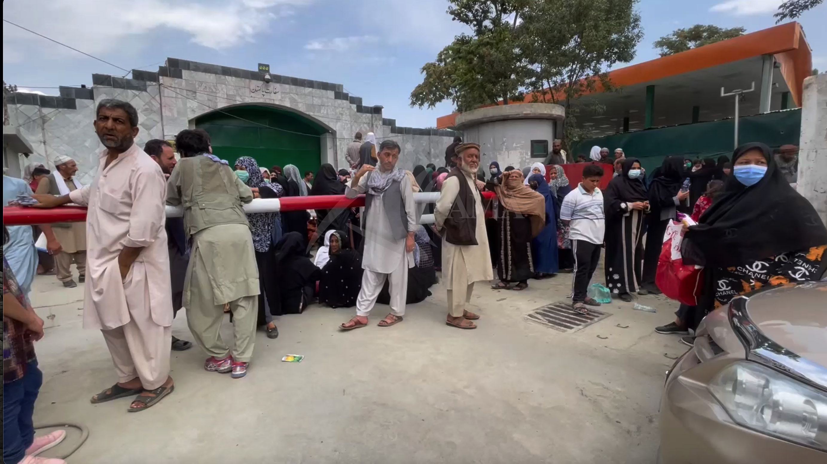 KABUL, AFGHANISTAN-AUGUST 23: Afghan families including women and children wait to get visas last days to flee the country after the Taliban takeover in Kabul, Afghanistan, on August 23, 2021. The embassy has extended consular services for Afghans and other nationals. More than 800 visas were issued last week after the Taliban took over Kabul. Afghan Multimedia Agency